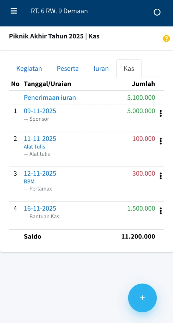Bendahara mecatata semua transaksi kas masuk dan keluar untuk kebutuhan group. Sedangkan saldo kas dan laporannya akan secara otomatis tersedia.